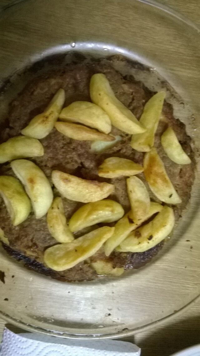 Sbattete le uova. Mischiatele con i vari macinati. Preparata la poltiglia, aggiungete il pane con la mollica. Modellate l’impasto e aggiungete sale, pepe e l’aglio tagliato a pezzetti finissimi. Infine, aggiungete il formaggio e il latte. Mischiate tutto e infornate al microonde per 15 minuti con sopra le patate tagliate a tocchetti. Servite bollente.