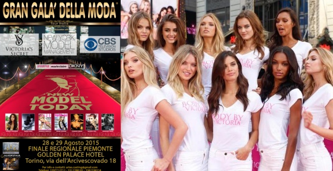 In palio due posti nell’Olimpo della moda, con l’agenzia degli angeli di VICTORIA’S SECRET. Le selezioni si terranno il 28 e 29 agosto, nella splendida cornice del “Golden Palace” di Torino, dove andrà in scena il Gran Galà della Moda – New Model Today. E’ l’unica tappa piemontese del tour 2015 del concorso di moda internazionale che negli anni ha dato artisticamente i natali a star del calibro di Charlize Theron, Natasha Poly, Lorenza Forteza, Berenice Todd e Anna Falchi.