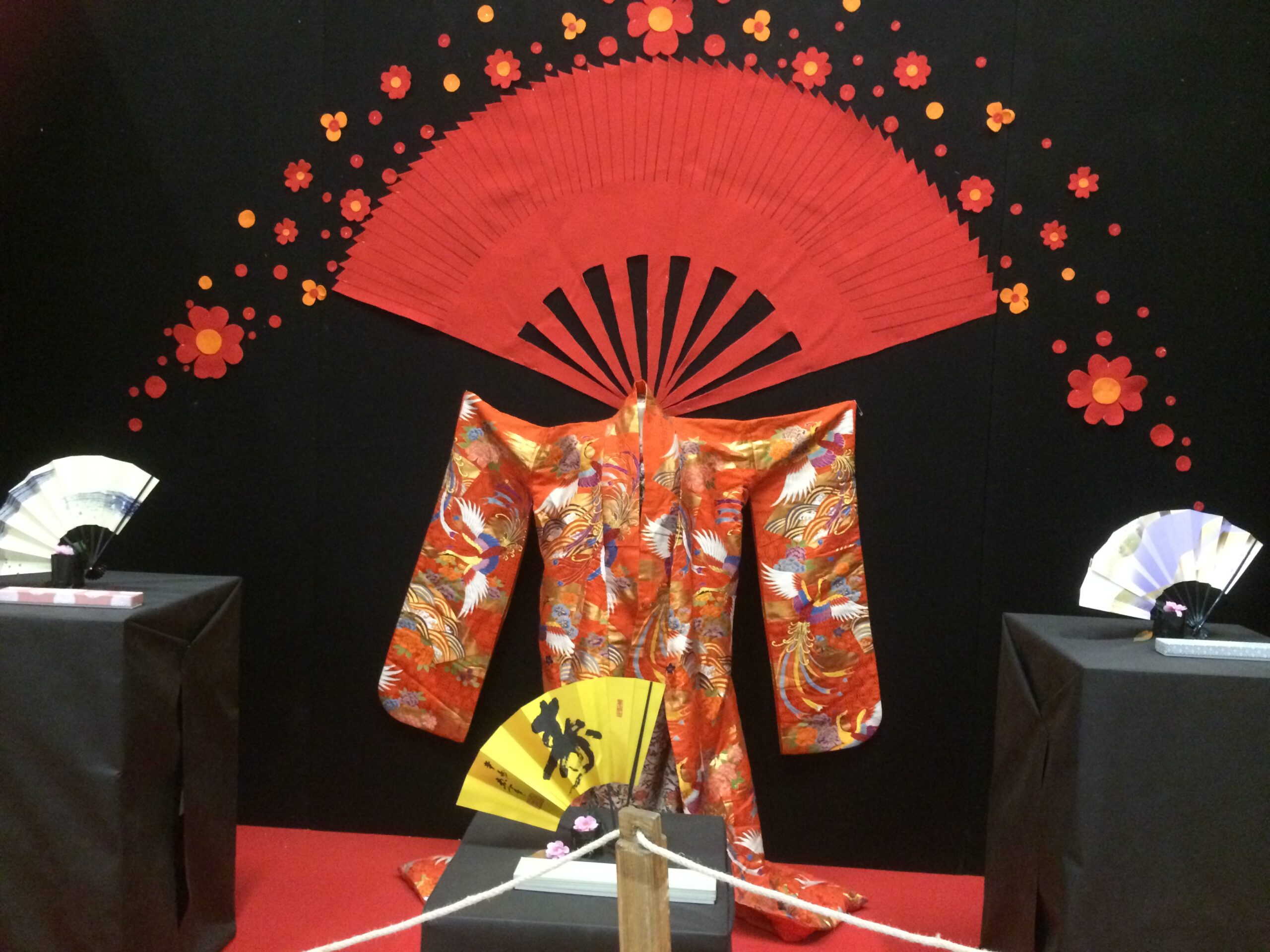 I kimono giapponesi hanno fatto da cornice ad un giardino zen e ad una bellissima gigantografia del Vesuvio immerso nei fiori di ciliegio giapponesi.